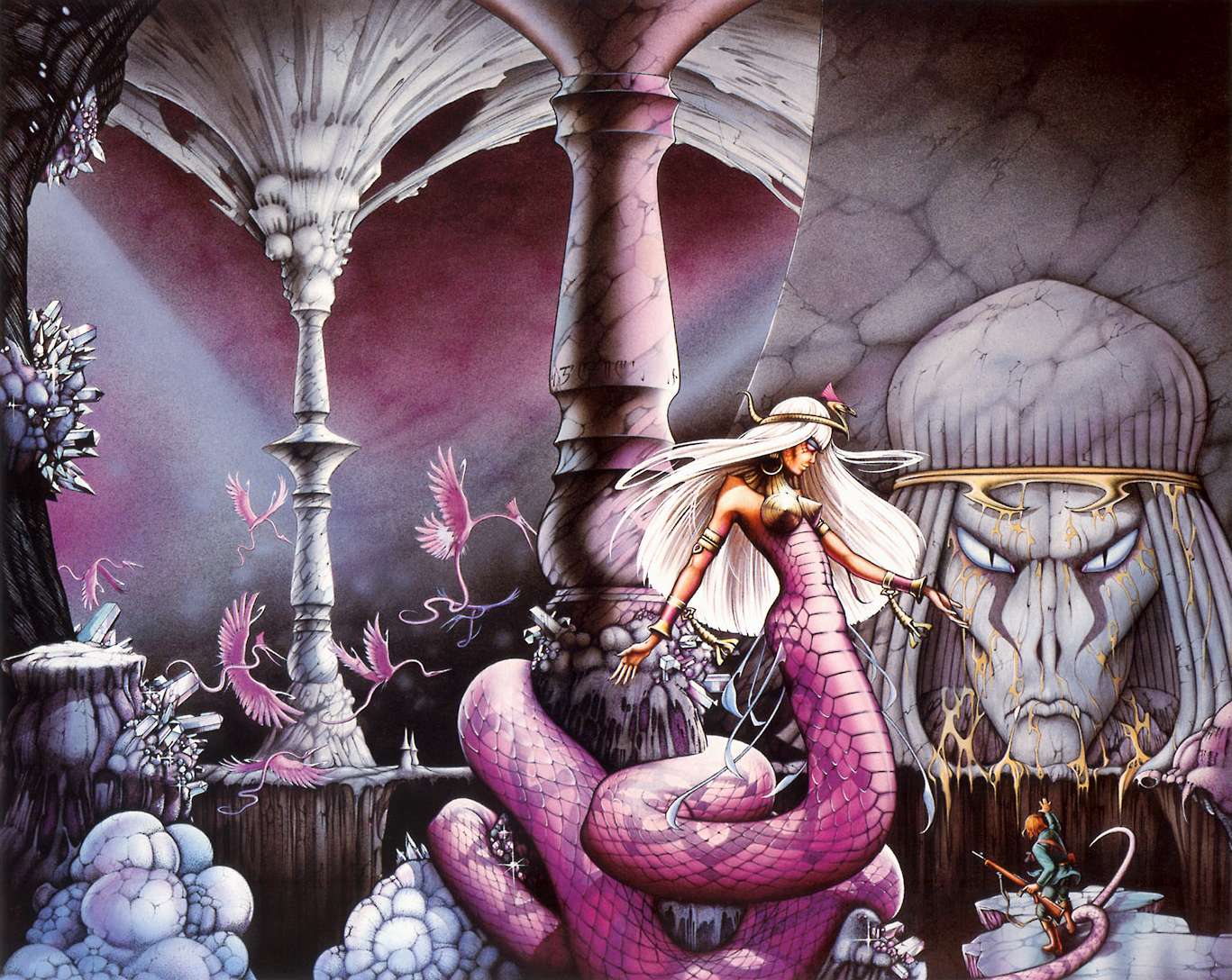 Edition 1979 de la collection des calendriers Rodney Matthews. Le calendrier est intitulé Another Time Another Place, du nom de la célèbre oeuvre qui orne la couverture et où on retrouve la classique interprétation des Rolling Stones réalisée en 1976 et connue de tous les fans. Mais pas que, puisqu’en plus petit on peut également lire "A journey into further dimensions reflected through the eyes of Rodney Matthews", ce qui peut se traduire par "Un voyage dans d'autres dimensions vu à travers les yeux de Rodney Matthews" et c'est tout à fait le cas avec les douze illustrations proposées dans ce nouveau calendrier.